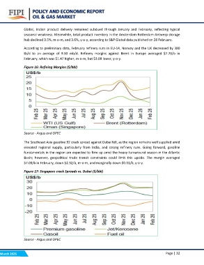 elevated regional supply, particularly from India, and strong refinery runs. Going forward, gasoline