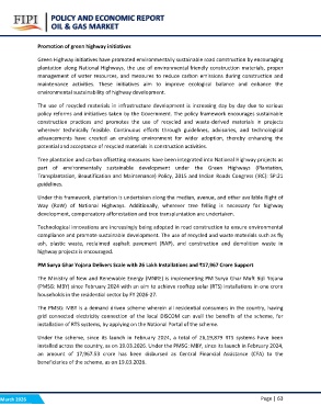 plantation along National Highways, the use of environmental friendly construction materials, proper