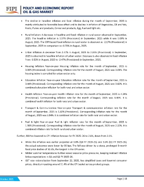? Rural Inflation: A decrease in headline and food inflation in rural sector observed in September,