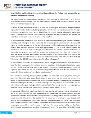 The Eighth Session of the International Solar Alliance (ISA) Assembly, scheduled from 27 to 30 October
